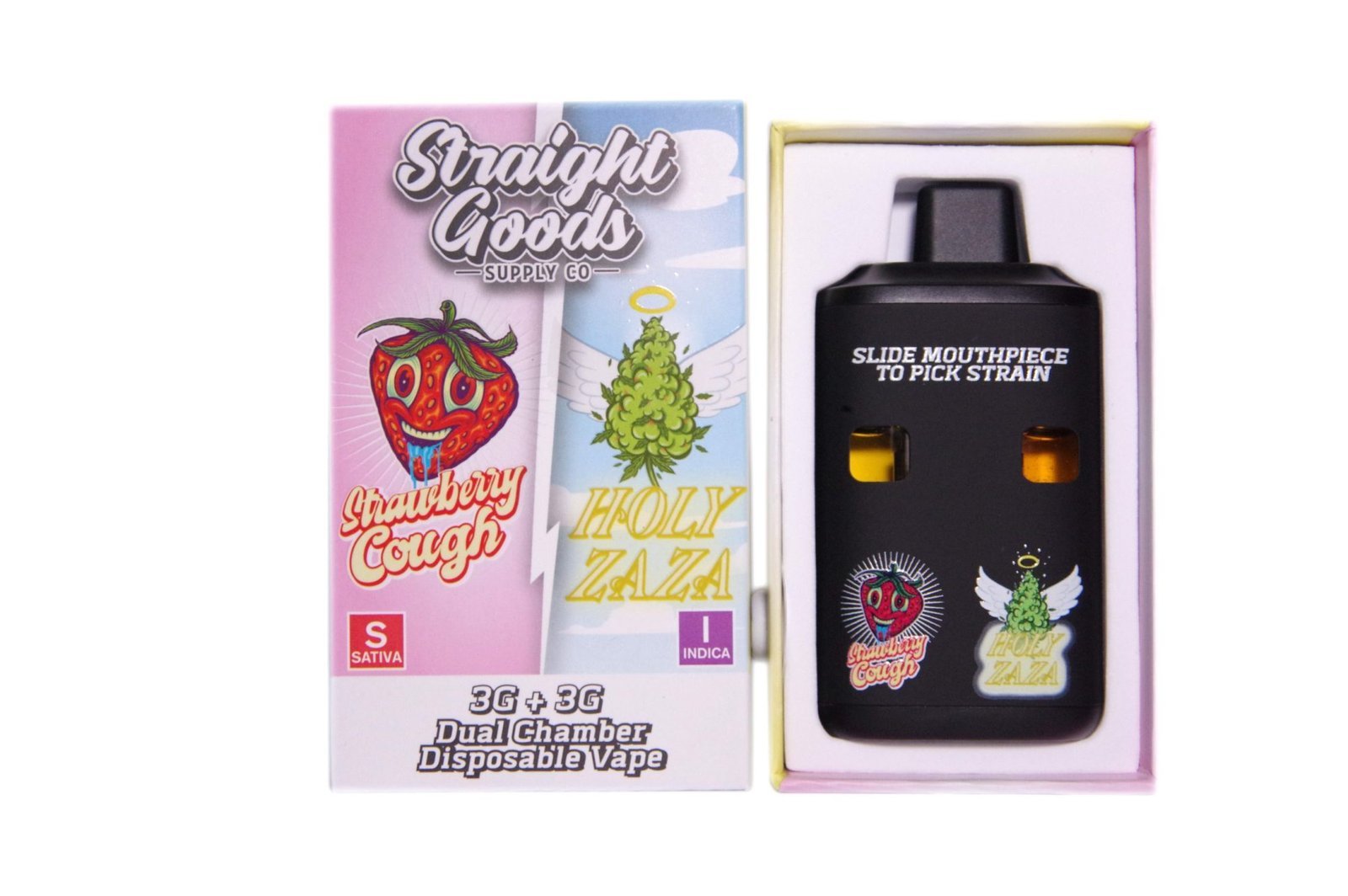 Straight Goods Supply Co. 6 Gram Dual Chamber Disposable Vapes – Strawberry Cough + Holy Zaza THC Distillate